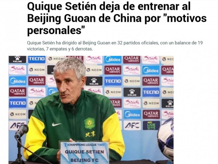 西媒报道塞蒂恩因个人及家庭原因选择辞职_中超直播免费直播视频直播
