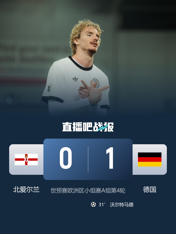 德国队在世预赛中以1-0战胜北爱尔兰实现三连胜 沃尔特进制胜球阿德耶米错失单刀机会_足球直播