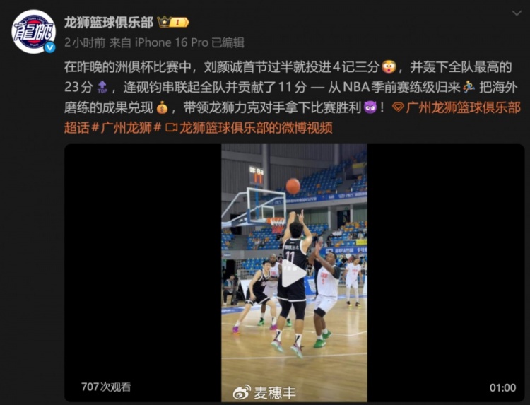 “从NBA季前赛中归来,展现海外磨炼的成果。”10月23日,广州龙狮男篮在社交媒体上如此更新。