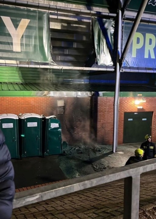 据普利茅斯当地媒体消息,德文郡和萨默塞特郡的消防救援部门在晚上9点10分接到火灾报警。赶到现场的消防员发现火势局限于两个移动厕所,并迅速用水带将其控制,然而坐落在体育场外墙上的厕所在火灾中已被彻底毁坏。