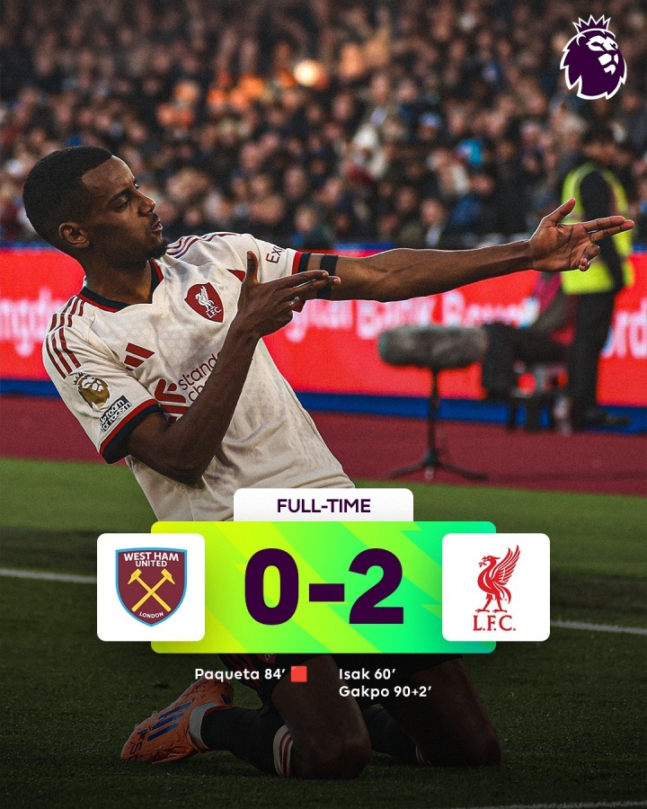 半場結束利物浦與西漢姆聯戰成平局 伊薩克錯失良機維爾茨制造威脅鐵錘幫未能射正