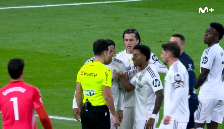 卡雷拉斯在被罚时表示:“你整场比赛都一直这样”,显然对裁判的判罚表示不满。而皇马球员巴尔韦德则直言不讳:“你不能这样把他罚下”,这一抗议也让他吃到一张黄牌。罗德里戈则更为直接,他指着伯纳乌的草皮和自己的队徽激动地说道:“你必须放尊重点,看看你现在在哪儿?你必须尊重人。”这一番话语显示出他对裁判执法的不满。