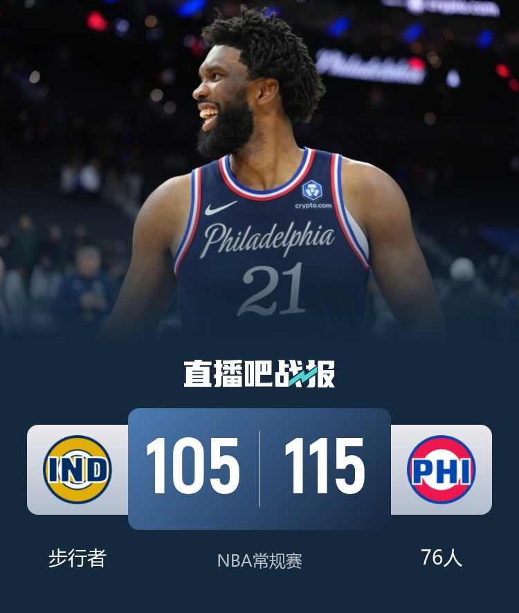 76人主场战胜步行者 恩比德创赛季新高39分9篮板 乔治贡献23分6篮板5助攻_NBA直播