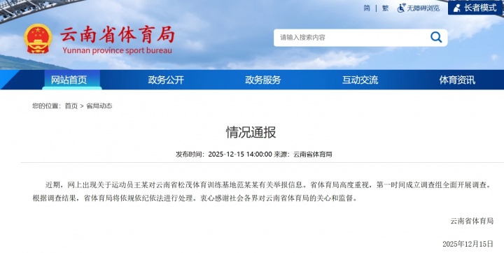针对这些举报,云南省体育局今日迅速发布了一则情况通报。通报中指出,针对王莉对范继文的举报,省体育局对此高度重视,并第一时间组建了调查组,以全面深入开展调查。调查结果将依据相关规定和纪律进行处理。同时,省体育局也表示,感谢社会各界对其工作的关心和监督。