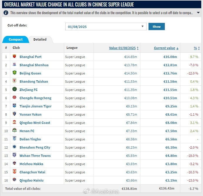 德国转会市场网于2025年中超联赛年终身价例行更新已于今日完成_中超直播
