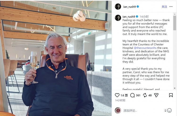 拉什特别感谢切斯特伯爵夫人医院的医疗团队:“他们以高超的医疗技术和无微不至的关怀令我深感欣慰。NHS工作人员的奉献精神让人钦佩,我非常感激他们所做的一切。”这名足球名宿借此机会表达了对医护人员的深切敬意,传达了他对生命的感悟与珍视。