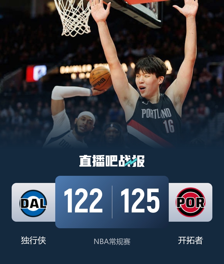 杨瀚森出场10分钟贡献1次助攻 开拓者战胜独行侠 阿夫迪亚获得27分9个篮板11次助攻_NBA直播