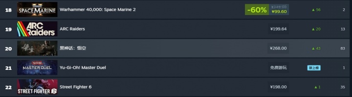在Steam国区的付费游戏畅销榜前十名中,排名表现同样优秀的还有《双人成行》《REPO》《EA SPORTS FC 25》《NBA 2K26》等知名游戏。这些游戏各具特色,吸引着不同类型的玩家。而在这些竞争对手中,《黑神话:悟空》凭借其独特的设计和深刻的游戏体验脱颖而出,展示了其作为一款创新之作的实力。