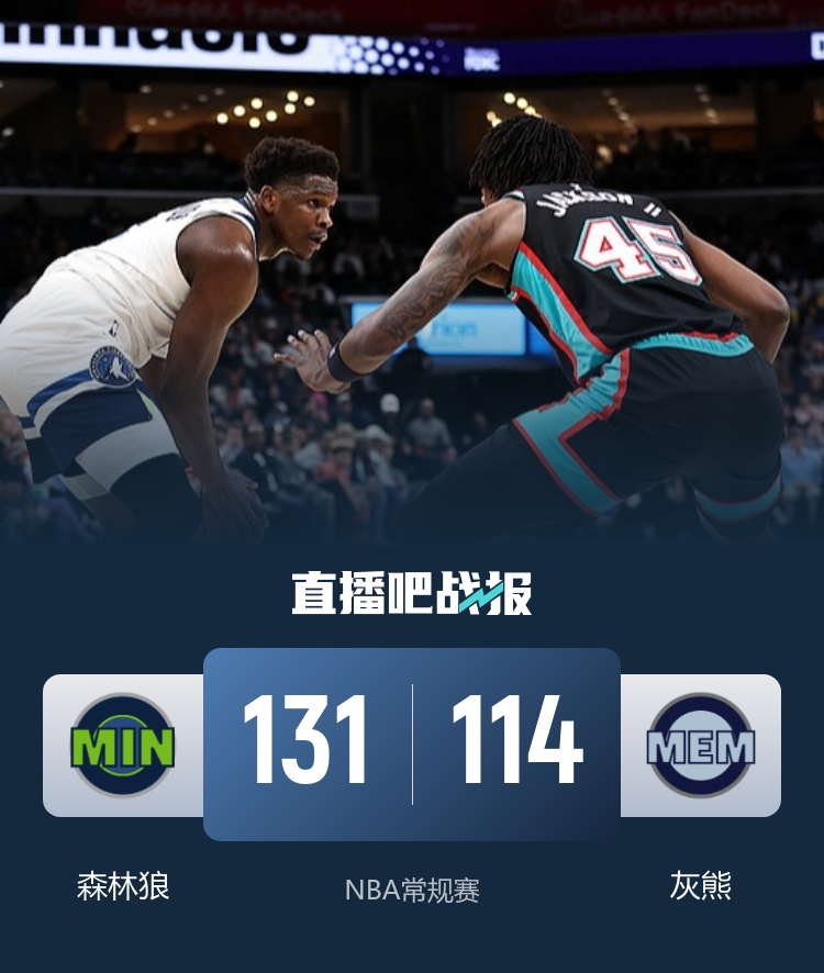 短暂休息后的第三节,爱德华兹又像是喝了兴奋剂,轻松再砍13分,分差瞬间拉开。到了第三节结束,森林狼已经领先18分,简直就像是给对手留下了“表演”的机会。第四节上,森林狼主力尽出,尽管灰熊稍微回暖,但对于分数的追赶就像是在追月,根本无法化解与对手之间的差距。最终,森林狼以131-114的比分战胜灰熊,顺利拿下四连胜,而灰熊则遗憾地送给对手如影随形的第六连败。