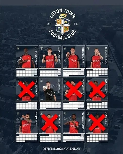 卢顿的2026年日历简直成了离队球员的墓碑,真是让人哭笑不得。大家可想而知,俱乐部一年开始就得开始与现实抗争,而这份“精美”的日历也成了最好的笑话。在这12名球员中,已经有五位“风光”离去,似乎时间还没有等到他们荣登封面,就已经被人遗忘。