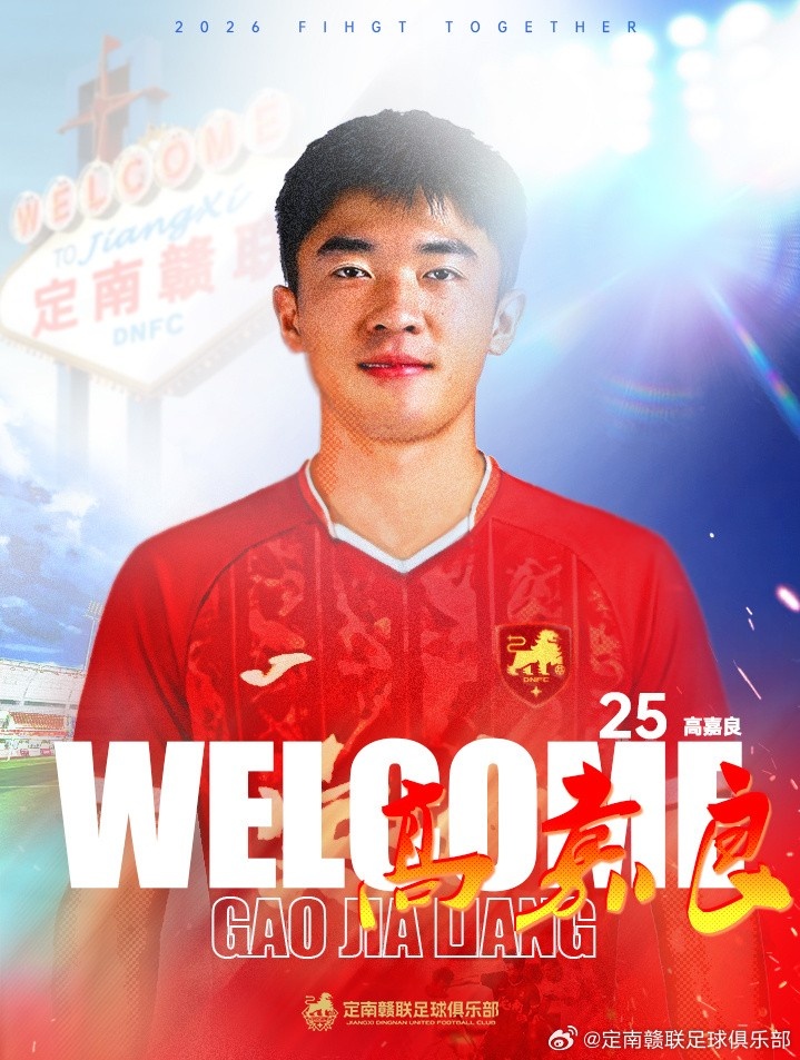 2月5日讯,中甲定南赣联足球俱乐部正式宣布高嘉良的加盟。