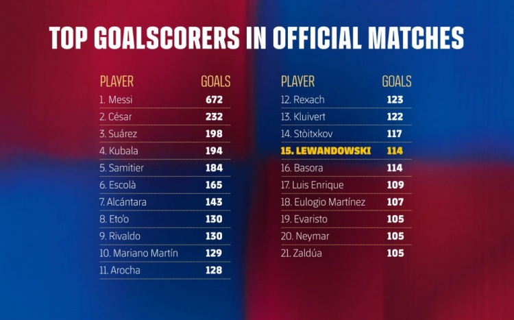 想想看,梅西的672球那可不是开玩笑的,连巴萨历史和他的名字几乎是一个档次的,都得在他的庇佑下打上“传奇”两字。而塞萨尔的232球和苏亚雷斯的198球,简直是另一个宇宙。莱万若想真正跻身该榜单的巅峰,显然还有漫长的路要走,像是跑步机上的人,怎么跑都达不到终点。