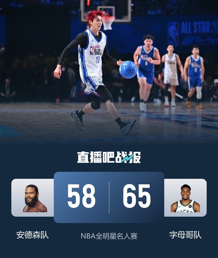 名人赛字母哥队奇迹逆转安德森队 王鹤棣勉强得分 Shams完全失踪_NBA直播