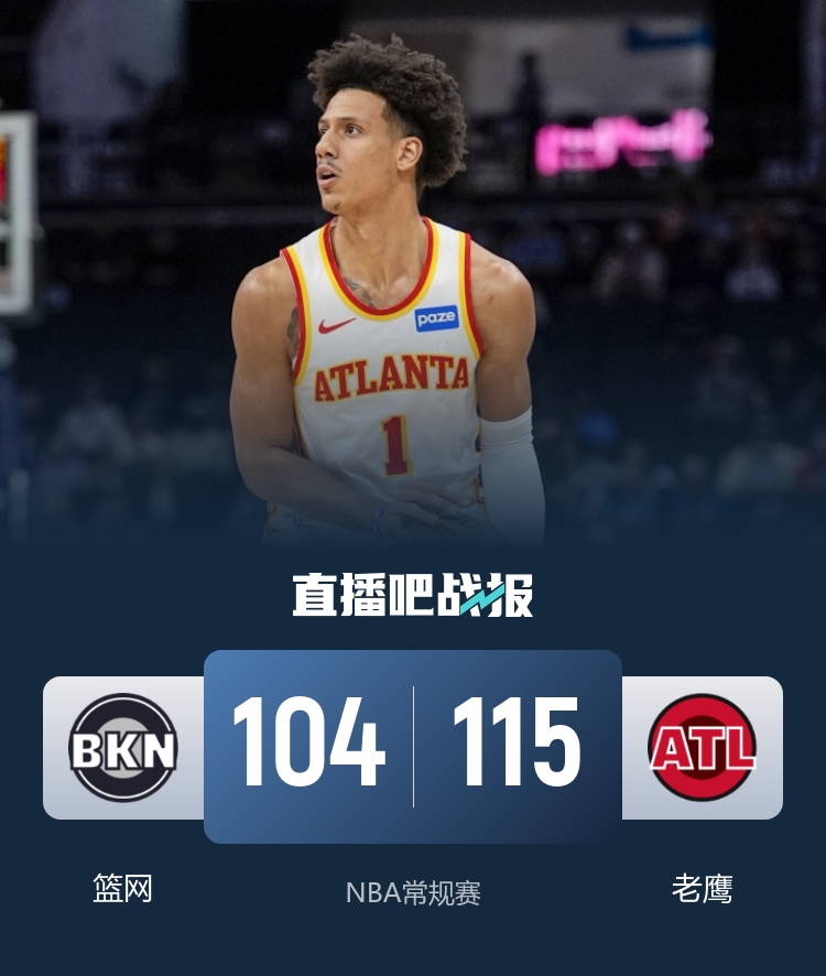 老鹰竟然以逆转打破篮网四连败的魔咒 约翰逊展现神奇数据 小波特也来凑热闹_NBA直播