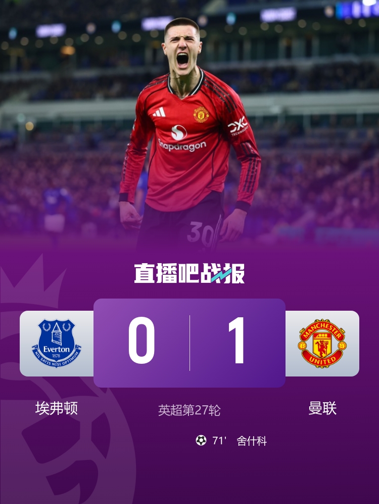 曼联近6轮战绩辉煌以5胜1平稳居第四 埃弗顿遭遇艰难失利舍什科连场替补进球助力球队_英超直播