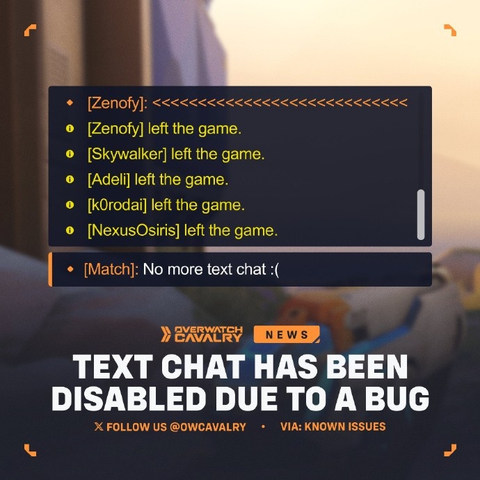 《守望先锋》遭遇罕见Bug 暴雪迅速关闭全球文本聊天功能_体育直播