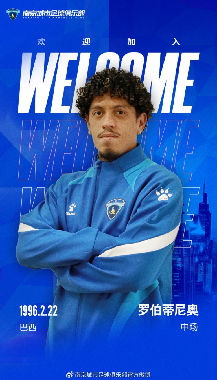 南京城市足球俱乐部对罗伯蒂尼奥的加入表示热烈欢迎,期待他在场上的精彩表现。相信他与南京城市的全员将共同面对新的挑战,开启新的篇章!