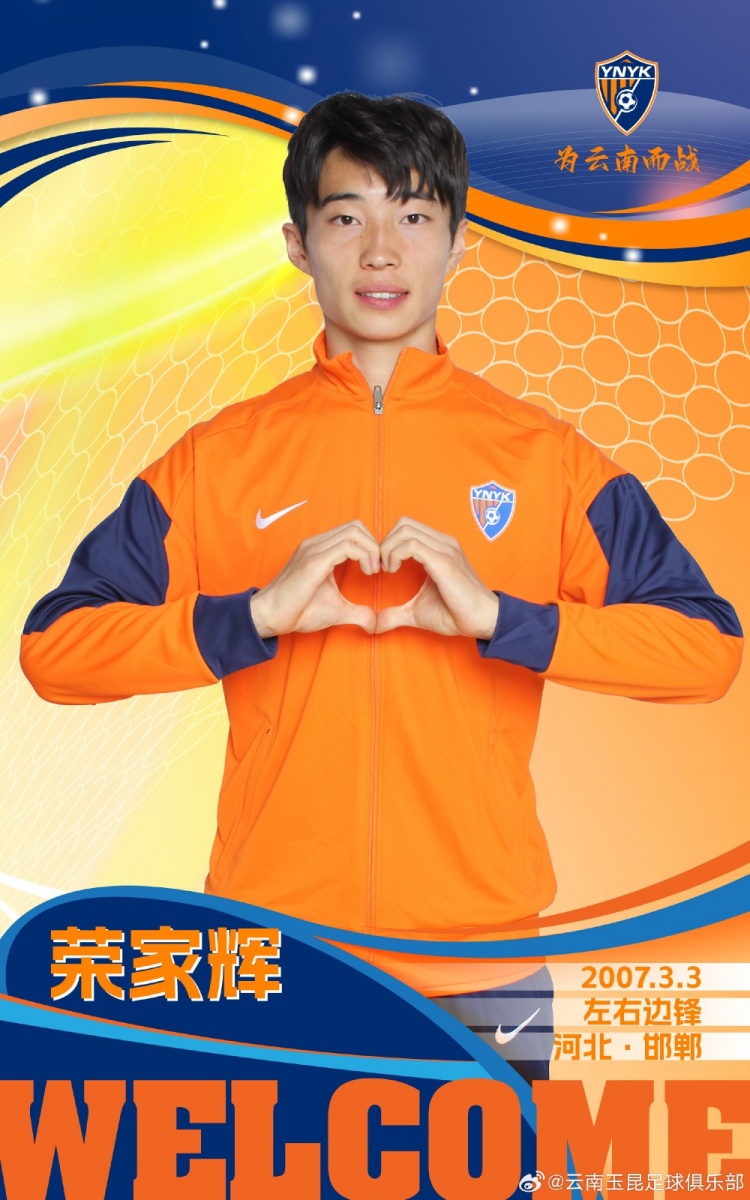 云南玉昆官方宣布王星皓与李博正式加盟球队 荣家辉晋升至一线队_中超直播