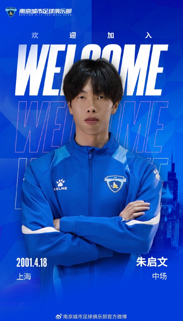 朱启文正式以自由身加盟南京城市足球俱乐部,这一消息经过他本人同俱乐部的协商达成。朱启文,出生于2001年4月18日,来自上海,身高186厘米,主要担任中场位置,曾在上海申花的青训系统中成长。