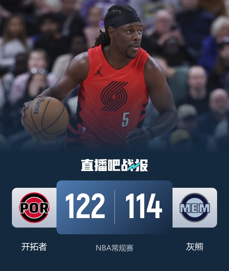 数据方面,开拓者的霍勒迪贡献了35分、5个篮板和11次助攻,格兰特也表现抢眼,砍下30分、9个篮板和4次助攻,威廉姆斯同样不甘示弱,交出了20分、11个篮板和3个盖帽的出色数据。灰熊方面,韦尔斯的表现同样可圈可点,他拿下24分、3个篮板和2次助攻,GG·杰克逊紧随其后,得到20分、4个篮板和1次助攻,普罗斯珀也为球队贡献了17分和9个篮板。总的来说,这场比赛不仅展现了球员的能力,也体现了团队之间的拼搏精神。