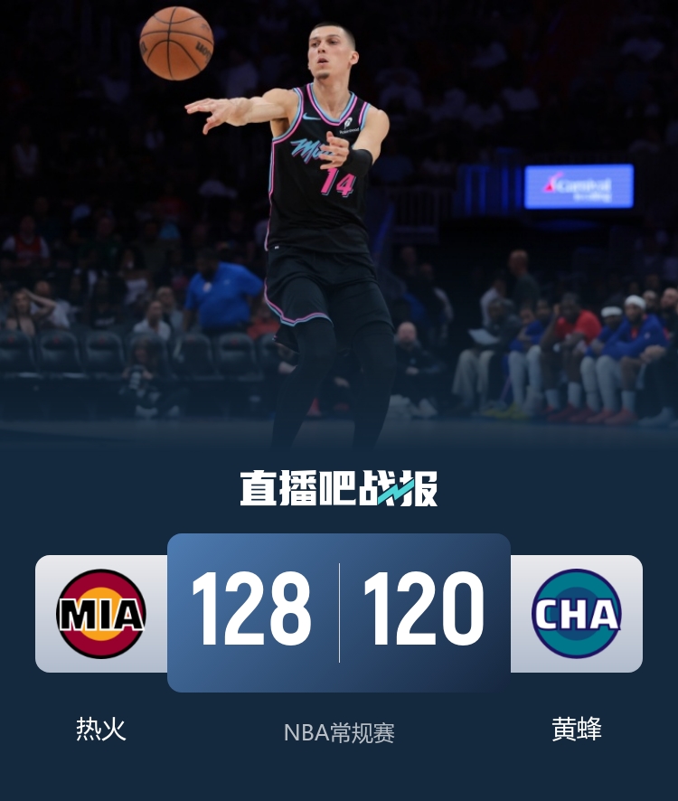 下半场,双方延续上半场的火热状态,外线的三分对飙持续进行。希罗在第三节表现出色,单节拿下14分,帮助热火队追平了比分,此时双方以40平结束第三节。最后一节,比赛愈发胶着,黄蜂队突然状态下滑,热火队抓住机会打出一波9-0的攻势反超7分。尽管克尼佩尔努力投中三分追分,但希罗的中远投能够及时回应,热火队一直保持着两球以上的领先优势。最终,热火以128-120战胜黄蜂,取得胜利。