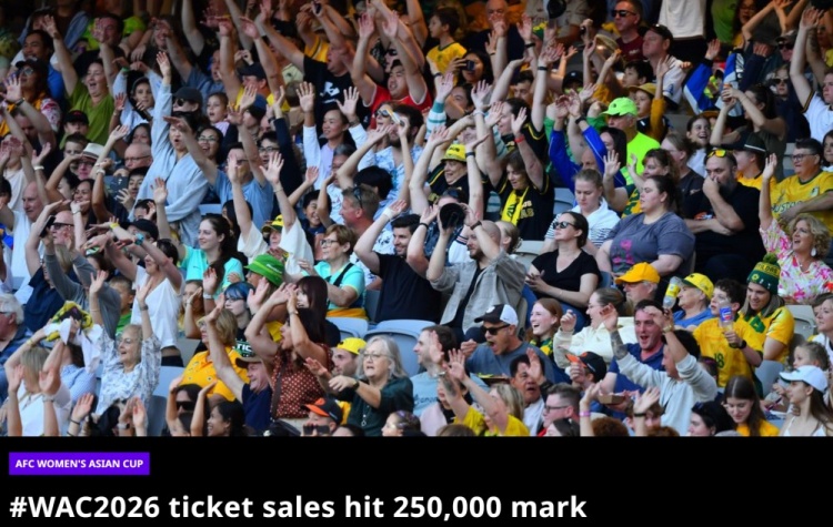 3月7日消息,近期从亚足联官网传来令人振奋的消息,在2026年澳大利亚女足亚洲杯开赛不到一周的时间里,赛事的门票销量已经突破了25万张,这标志着赛事在票务方面又达到了一个新的高度。