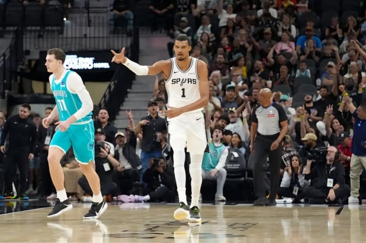 尽管如此,黄蜂在第四节时曾一度将分差缩小至4分,展现出拼搏的精神。不过,文班亚马的高水平发挥让比赛的走向逐渐倾斜,他通过高位策应,精准地为凯尔登创造了得分机会。黄蜂在防守上出现了漏洞,让马刺逐渐拉开了分差。
