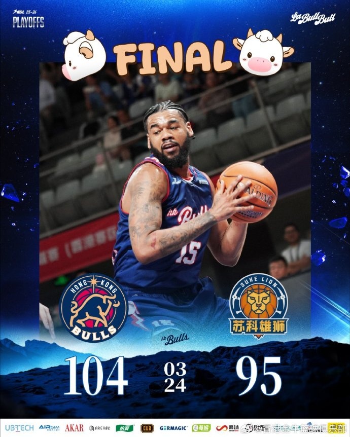 最后一节,尽管球队的投篮命中率有所下降,但在防守端依然强劲,卢杜伟的三分球为球队增添了稳定的得分,最终比赛以104-95结束,香港金牛赢得胜利。数据上,阿诺斯克表现突出,贡献24分5篮板,琼斯拿下13分10篮板7助攻4抢断,庞兹则收获11分6篮板5助攻等。