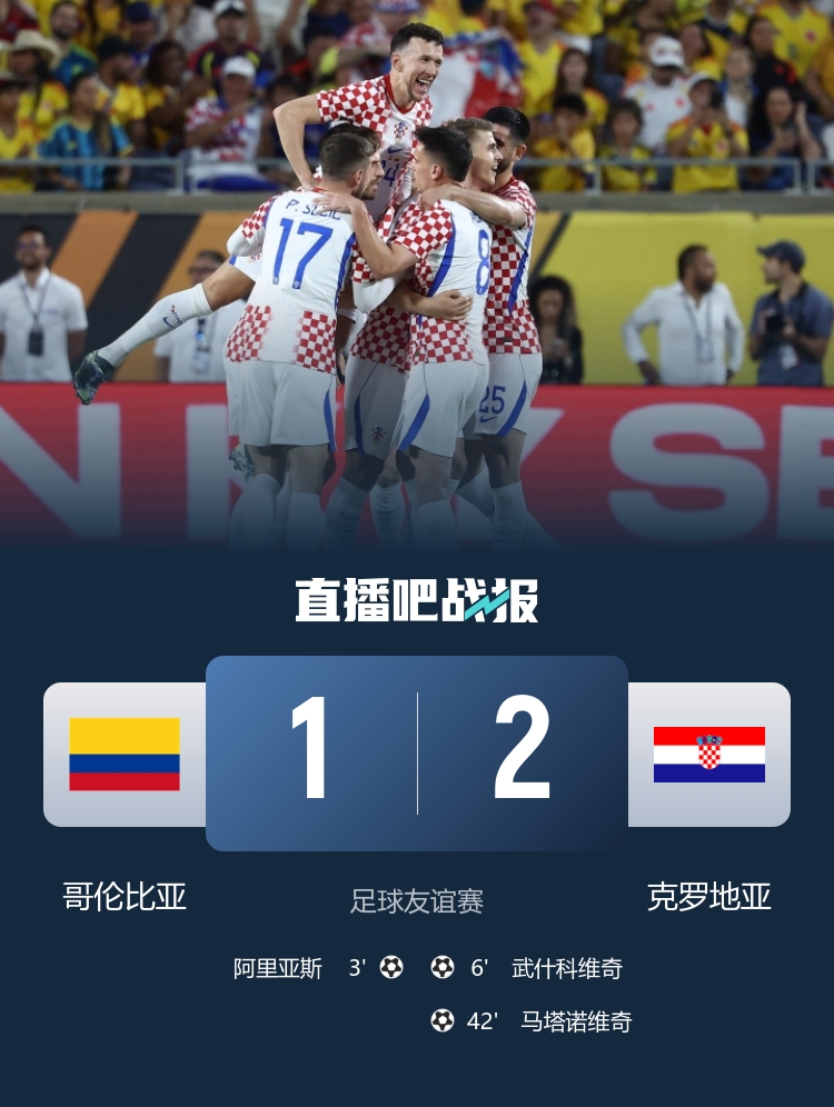 友谊赛中哥伦比亚不敌克罗地亚 武什科维奇进球马塔诺维奇献功_体育直播