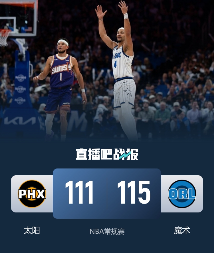魔术六人得分上双险胜太阳 贝恩贡献21分6篮板5助攻 萨格斯拿下20分8篮板7助攻 布克虽砍下34分7篮板依旧落败_NBA直播