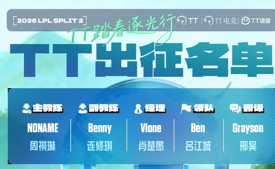 新的一季开启新的篇章,TT战队志在逐光前行。在2026LPL第二赛段中,让我们齐心协力,奋勇向前,展现出全力以赴的拼搏精神!