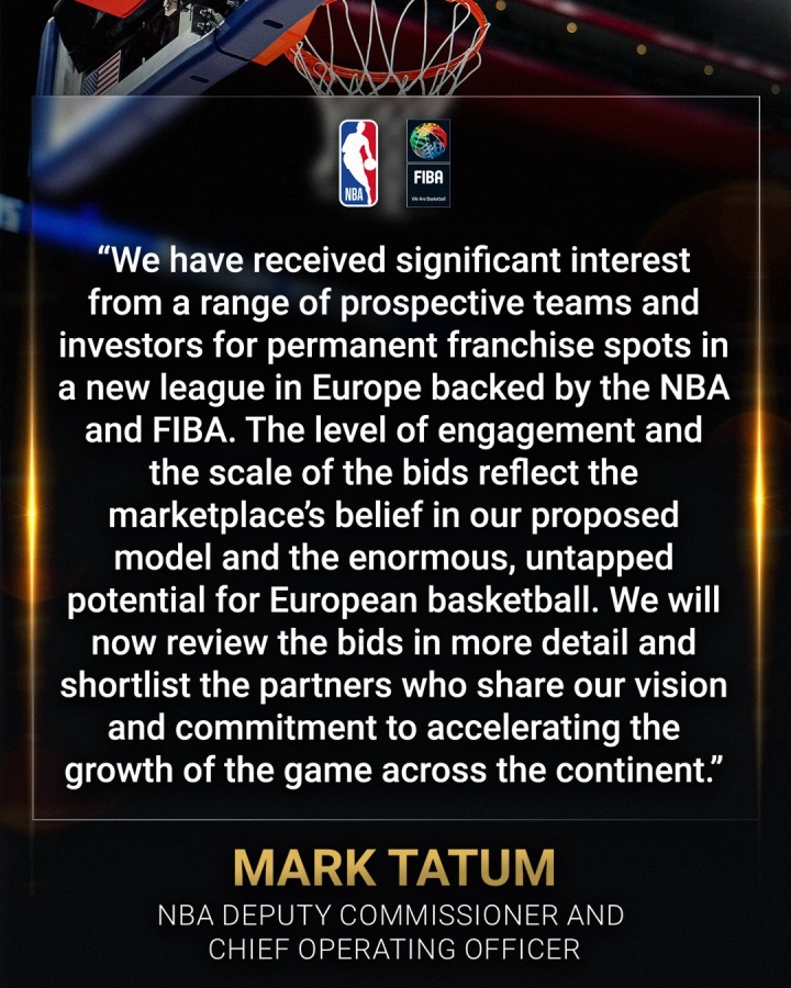 NBA官方透露多個財團對新歐洲聯賽表現出濃厚的興趣 正在尋找合作夥伴