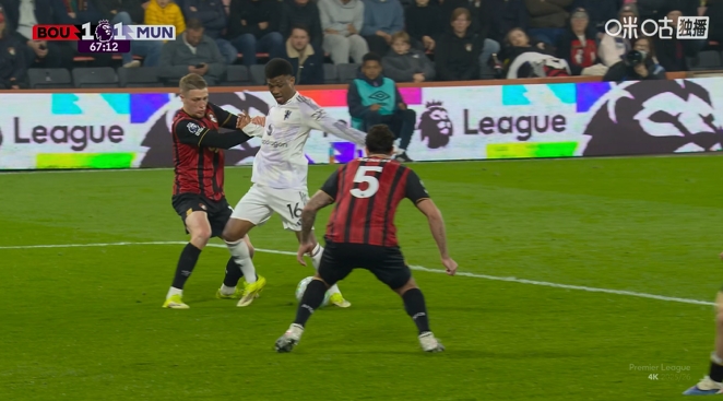 故事的高潮发生在比赛的第67分钟,阿玛德在与特吕费尔争夺的过程中如同被一根看不见的线绳绊倒,接着毫不留情地倒下了,就像是被外星人施了魔法。但裁判的反应却是冷漠至极,似乎他在说:“这只是个接触,别那么娇气”。紧接着,伯恩茅斯迅速反击,居然如愿以偿地将比分扳平,这就像在对阿玛德的不屑一顾又添把柴。