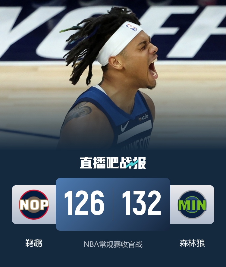 森林狼击败鹈鹕 华子等五人缺席 费尔斯砍下36分10篮板 奎因贡献30分22篮板_NBA直播